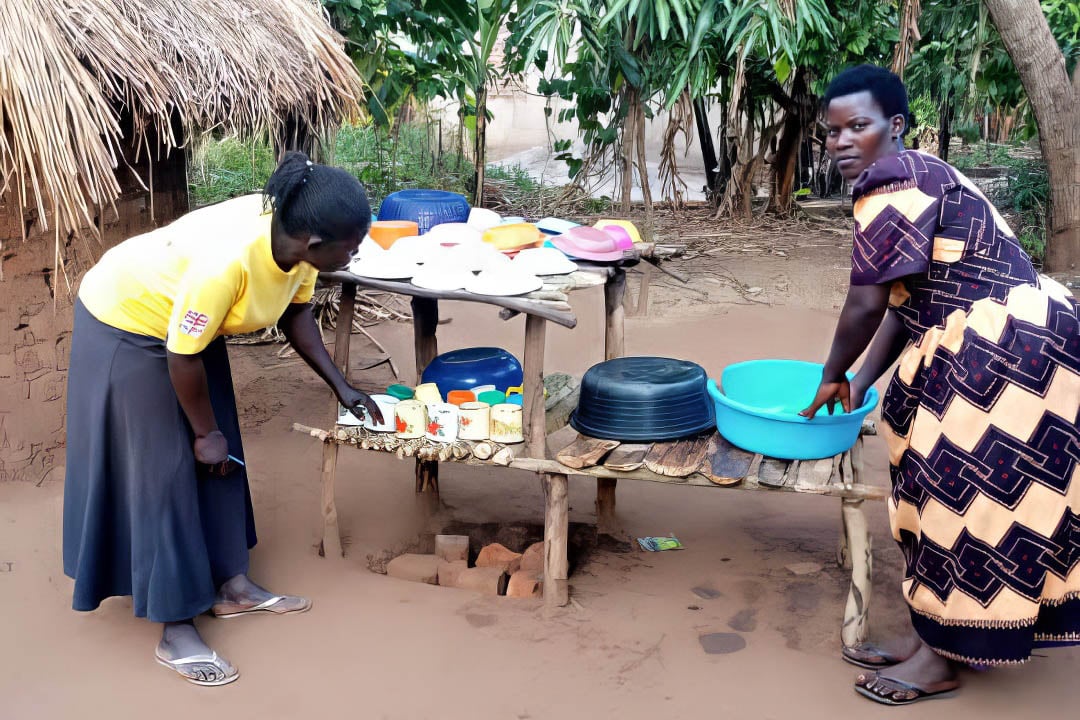 District health workers supported these efforts by creating awareness and empowering community members with knowledge and skills to use local resources to practice basic hygiene standards. Community members have gone on to build tippy tap hand washing stations and construct drying racks to separate household utensils from dirty water and allow them to dry in the sun.
